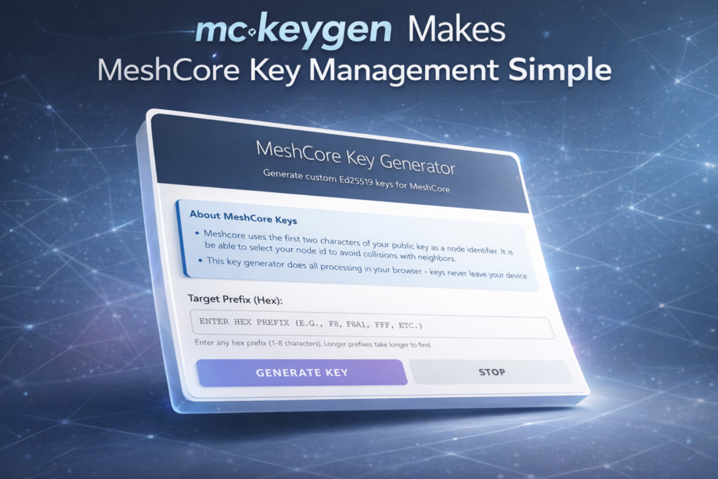 After you’ve generated a custom key with mc-keygen, and you have your new public and private keys, the next step is applying them to your MeshCore companion device.