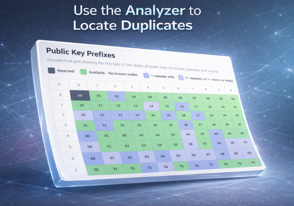 This is not a routing failure and it’s not an issue with RF collisions or “doubling”. No, this is purely a MeshCore identity issue. These duplicates will start to appear as your mesh grows and fills out. Rest assured MeshCore’s underlying packing switching engine is dutifully looking at the entire address, as it should, and as it was designed to do. This is purely a troubleshooting, identity, and manual path routing problem.